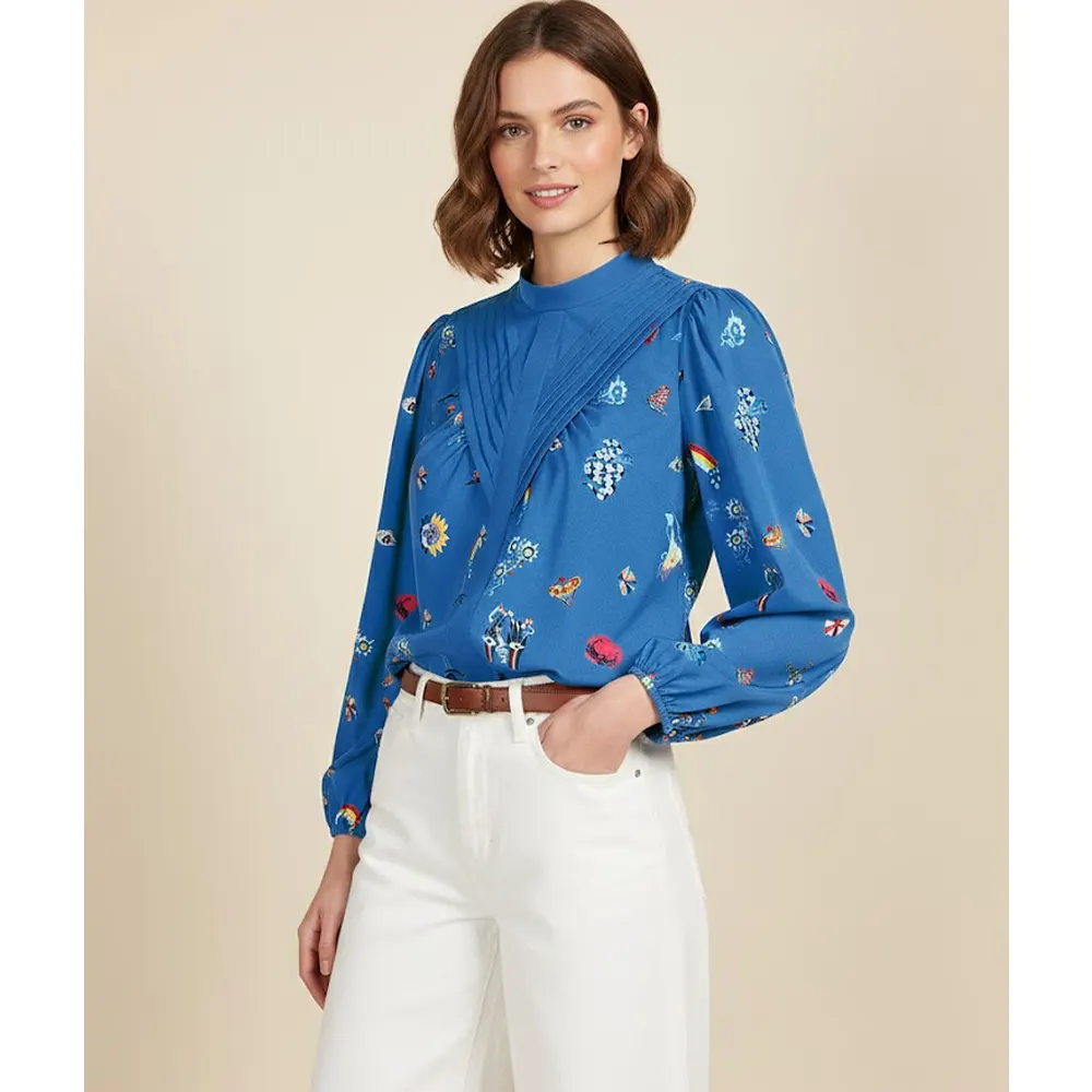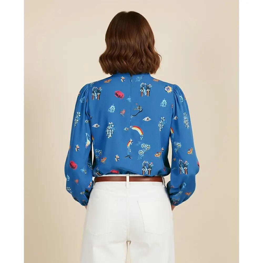 Ανοιξιατικη Μπλε Μπλούζα με Σχέδια, Ψηλό Λαιμό – Mystic
