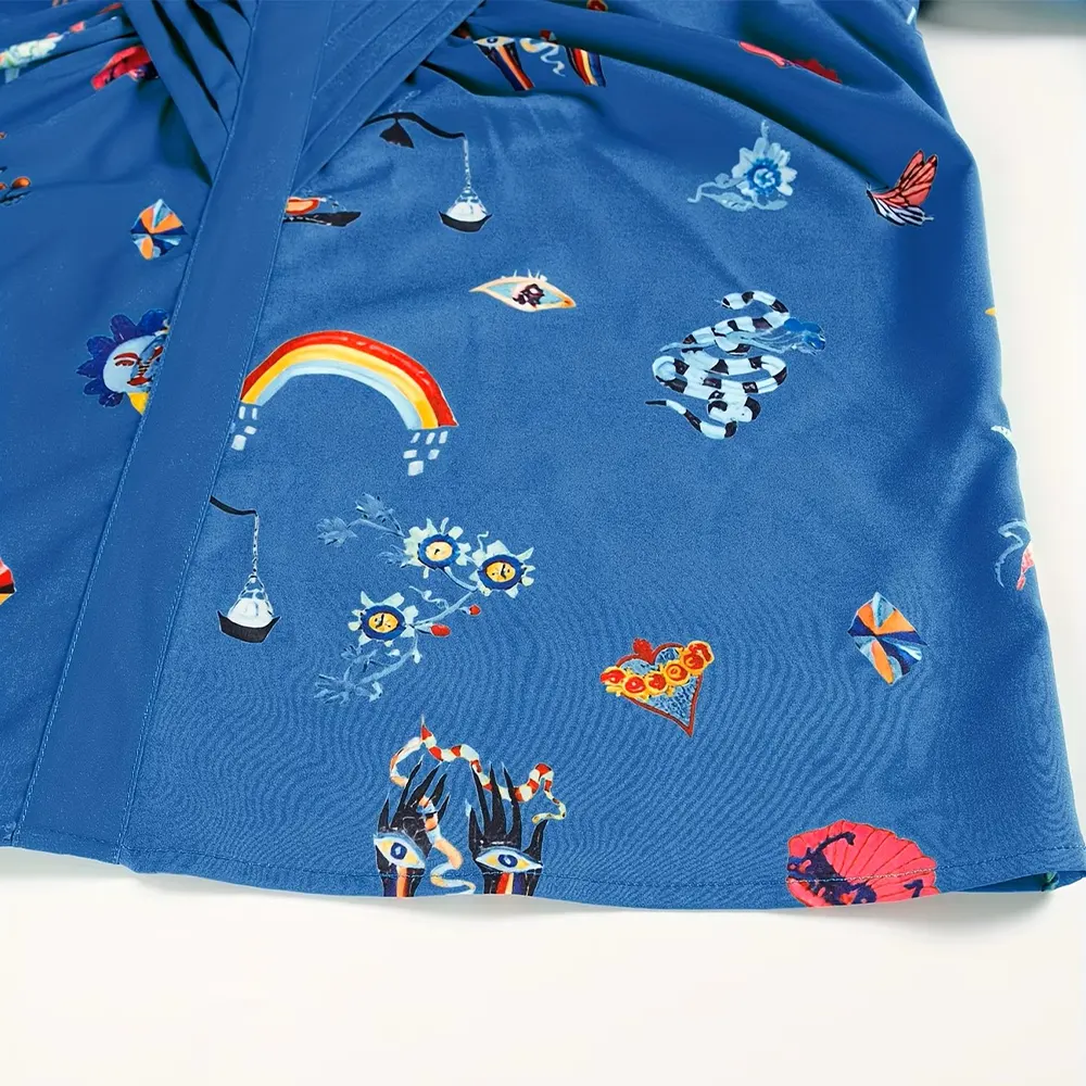 • Χρώμα: Μπλε ρουά (Royal Blue) με πολύχρωμα prints.