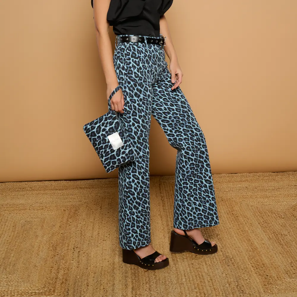 Minueto Μπλε Λεοπαρ Καμπάνα Παντελόνι τζιν