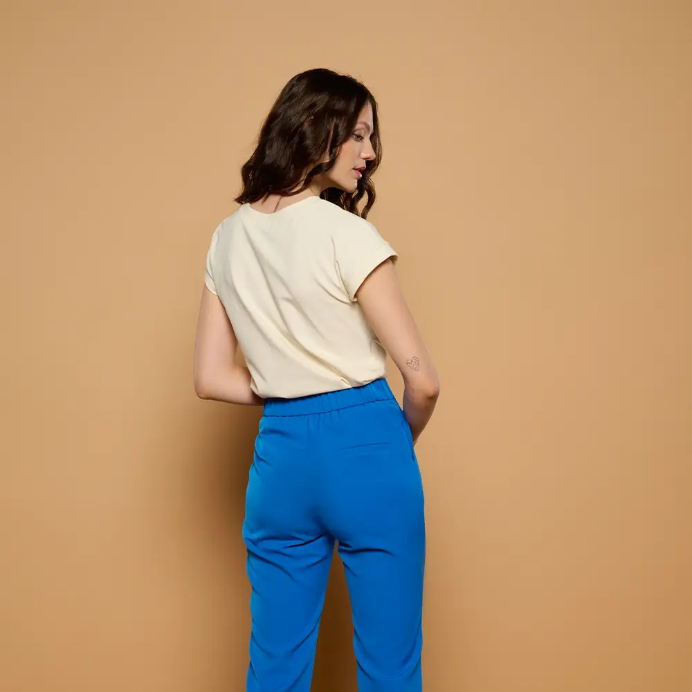 • Λεπτομέρειες: Στρογγυλή λαιμόκοψη και κοντά μανίκια με γυρισμένο τελείωμα (ρεβέρ).