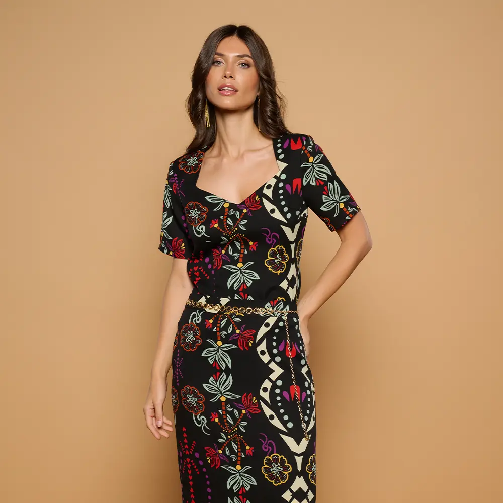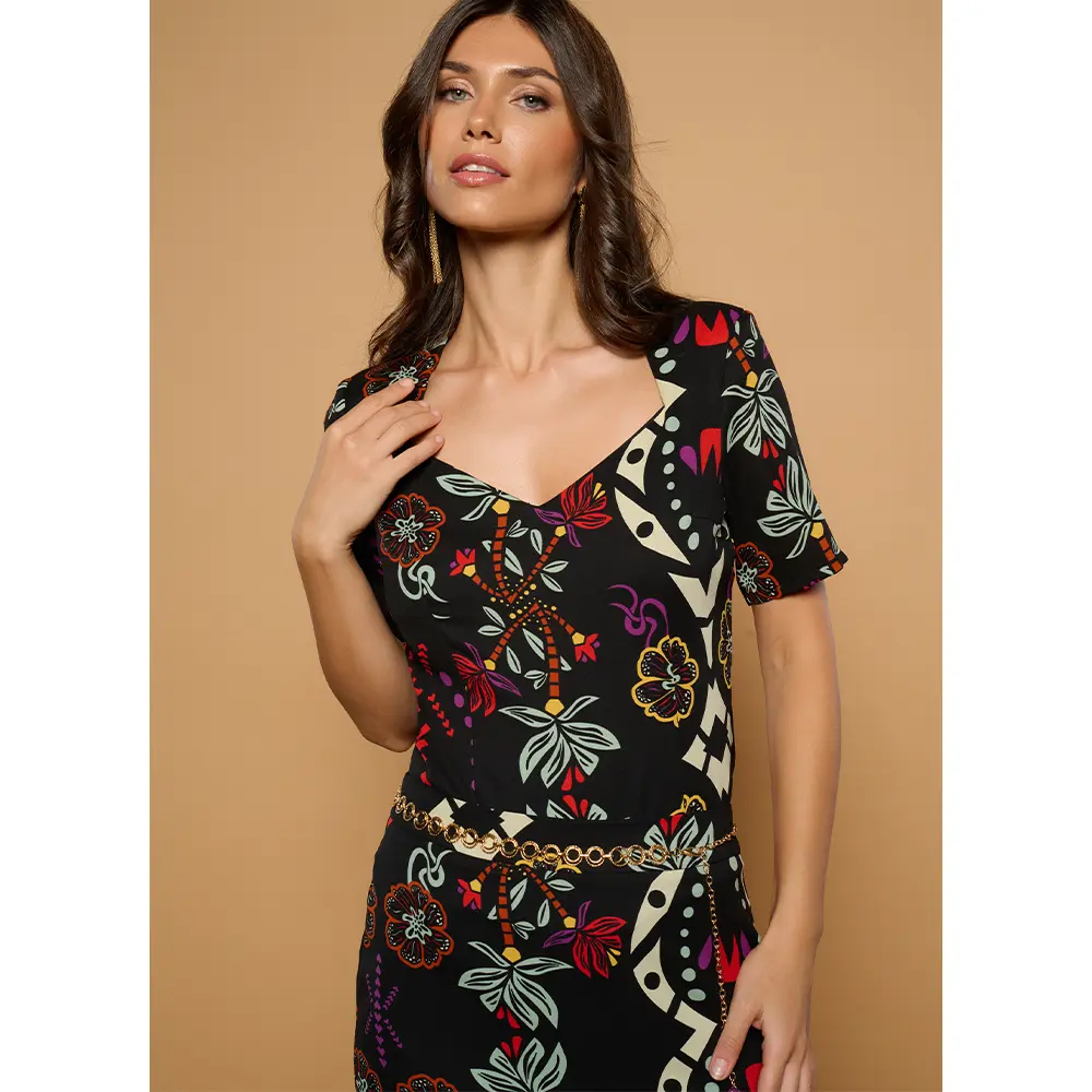 Minueto Μπλούζα με Πολύχρωμο Ethnic Print & Square Neck