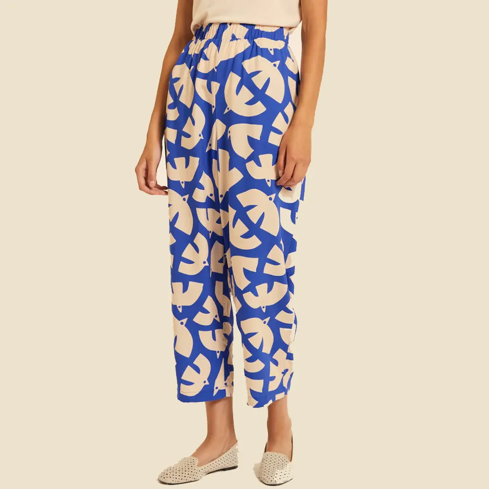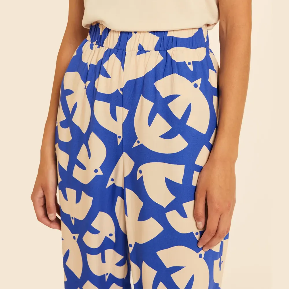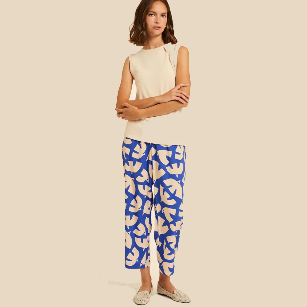 Το Blue Birds Pants δεν είναι απλώς ένα παντελόνι, είναι ένα statement κομμάτι που φέρνει τη φύση στην γκαρνταρόμπα σας. Με το υπέροχο print από μπλε πουλιά σε απαλό φόντο, αυτή η παντελόνα προσφέρει έναν αέρα ρομαντισμού και vintage αισθητικής που μόνο η Pepaloves ξέρει να δημιουργεί.