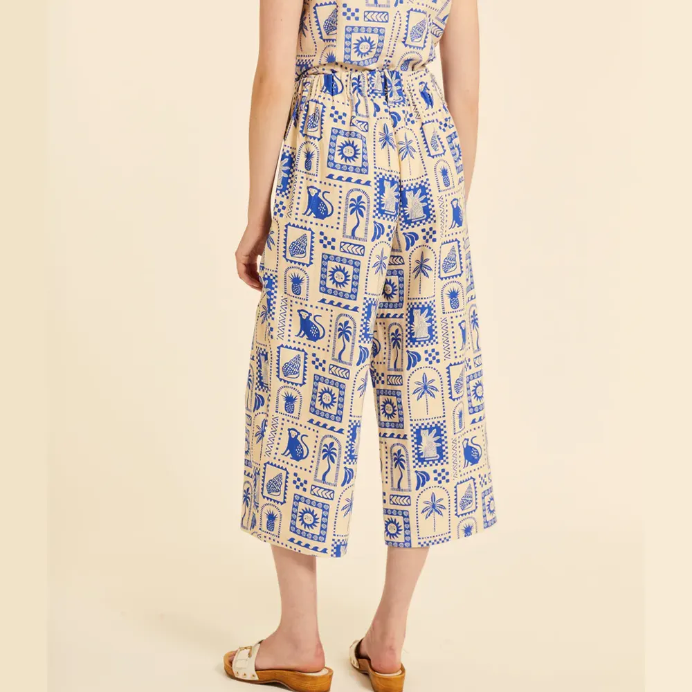 Pepaloves Παντελόνα Morocco Ψηλόμεση με Μπλε & Κρεμ Σχέδια