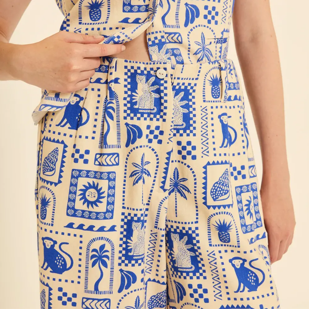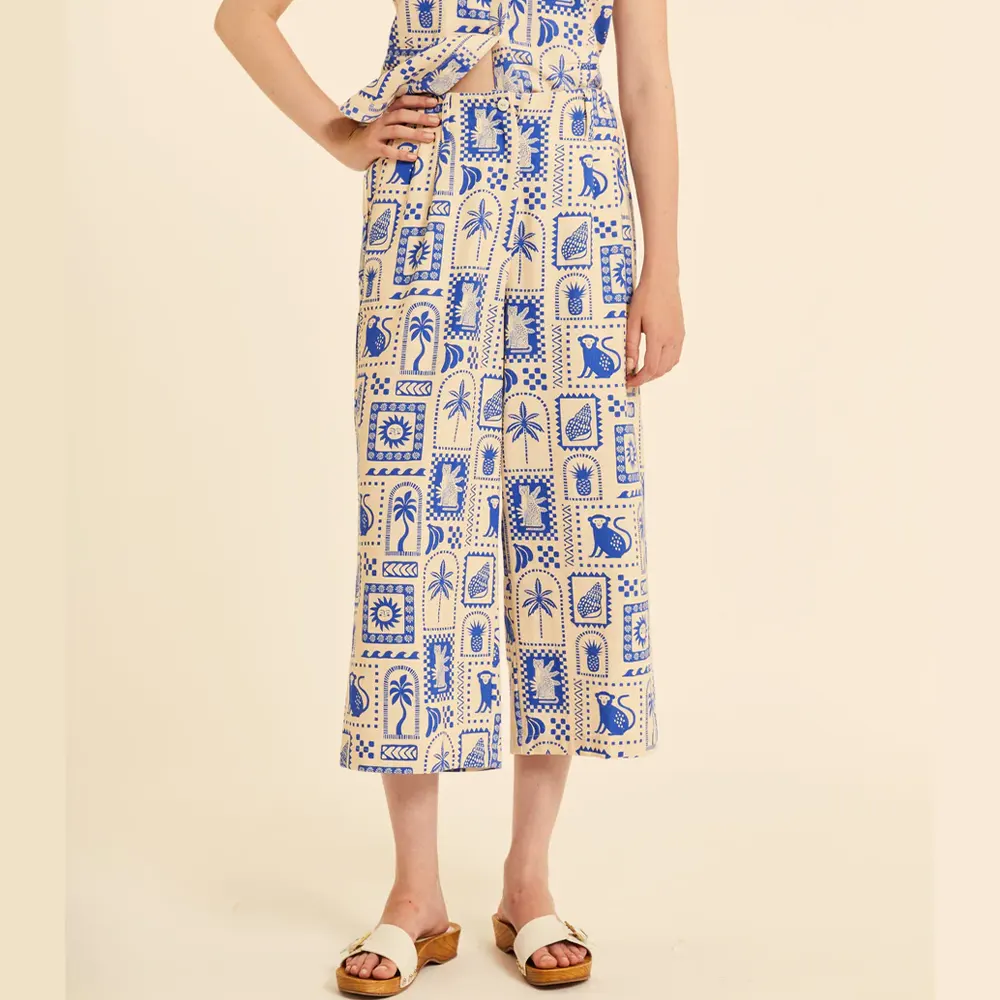 Ολοκληρώστε το πιο quirky set της σεζόν με την παντελόνα Morocco. Με το μοναδικό print σε στυλ γραμματοσήμου είναι η επιτομή του “sweet & retro” στυλ.