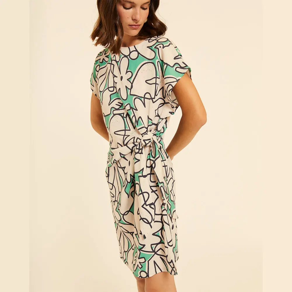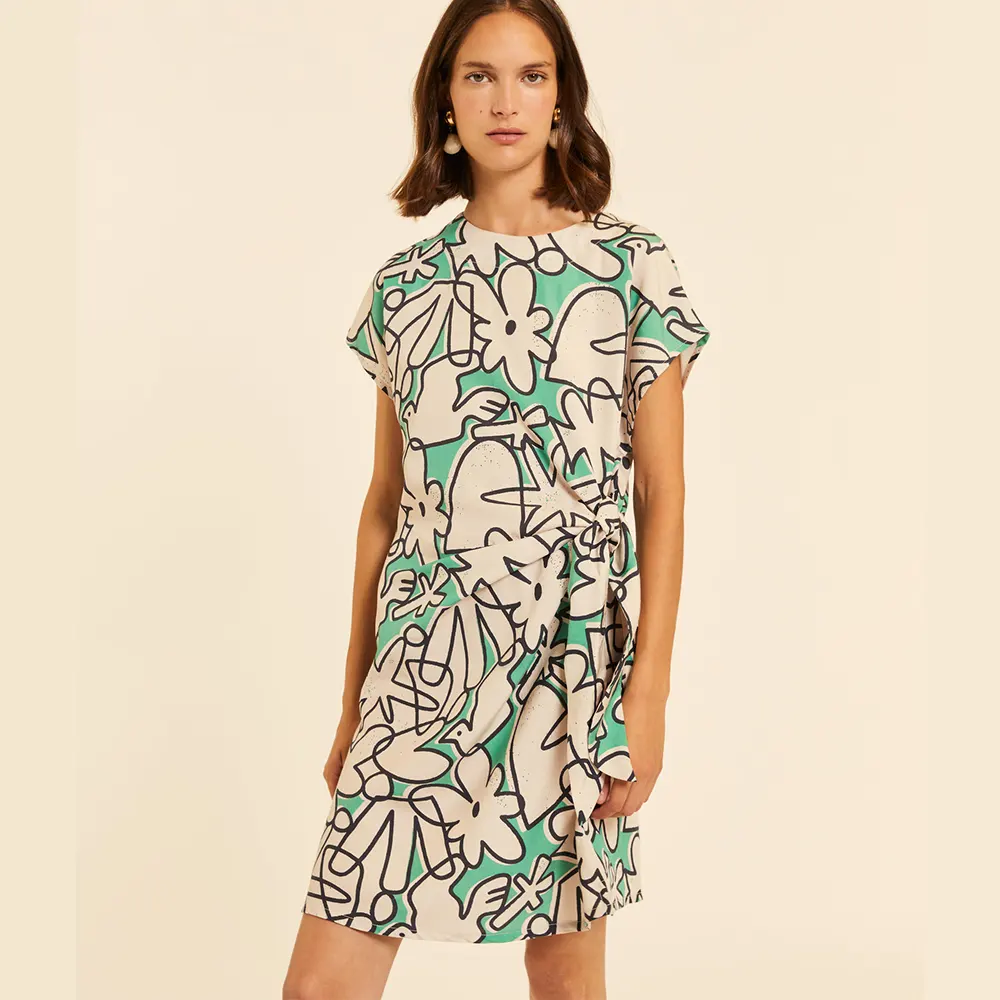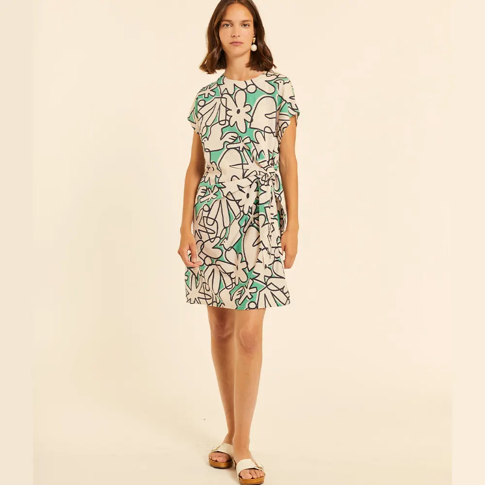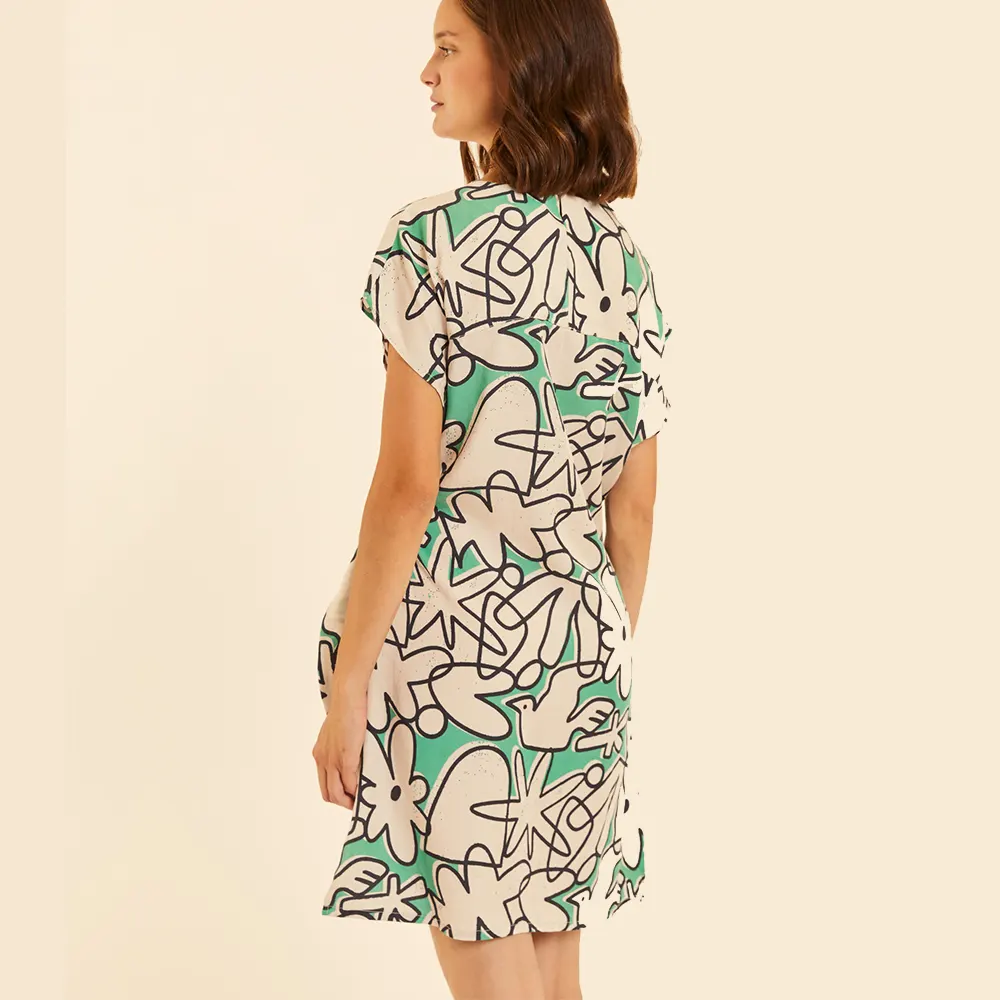 Styling Tip: Συνδυάστε το με minimal μαύρα πέδιλα ή λευκά sneakers για να αφήσετε το print του φορέματος να είναι ο απόλυτος πρωταγωνιστής.