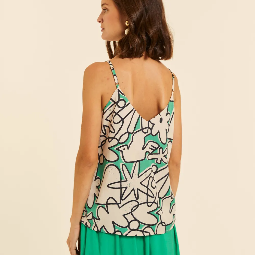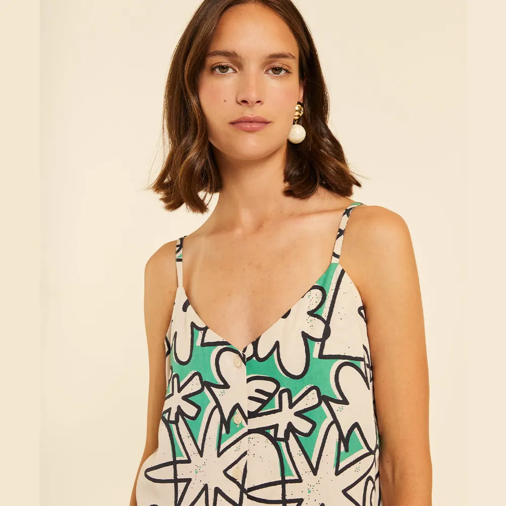 Εμπνευσμένο από τη μοντέρνα τέχνη και το κίνημα του κυβισμού, αυτό το αμάνικο top είναι ένα statement κομμάτι που δεν περνά απαρατήρητο. Το Kubiste Top διαθέτει ένα μοναδικό μοτίβο με αφηρημένα πρόσωπα και γεωμετρικά σχήματα, προσφέροντας έναν σοφιστικέ και ταυτόχρονα fun χαρακτήρα σε κάθε σας εμφάνιση.