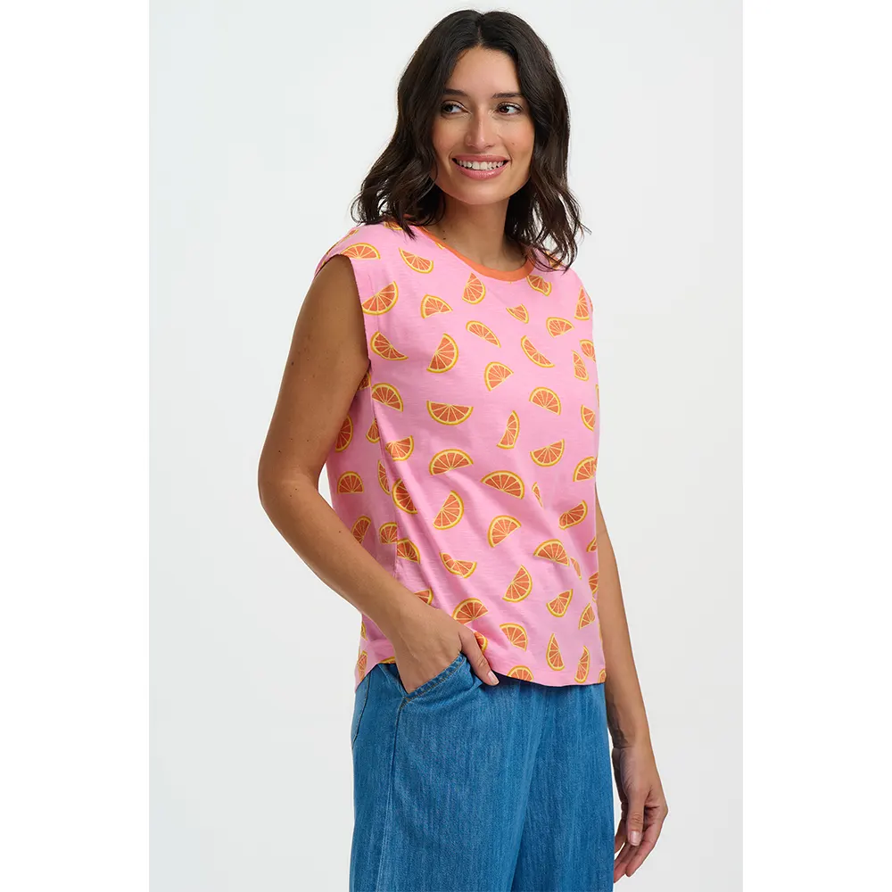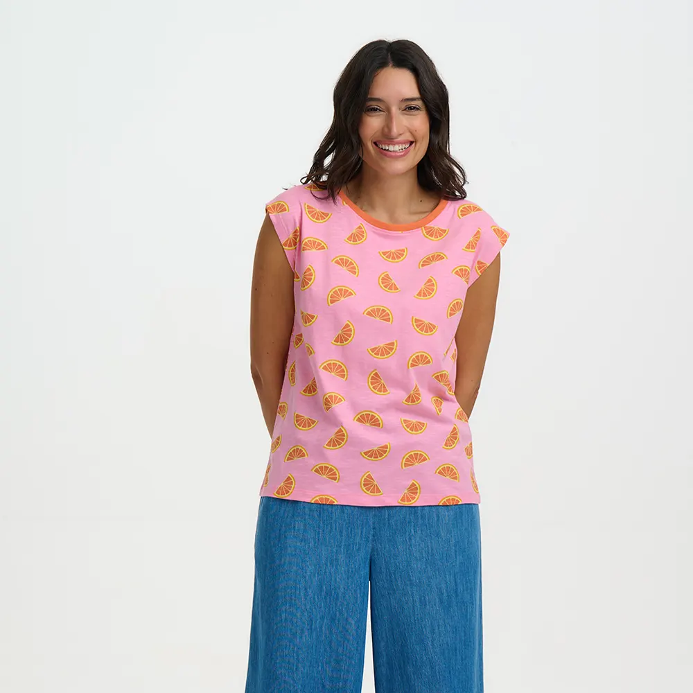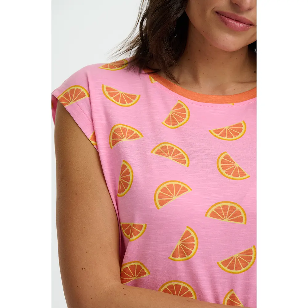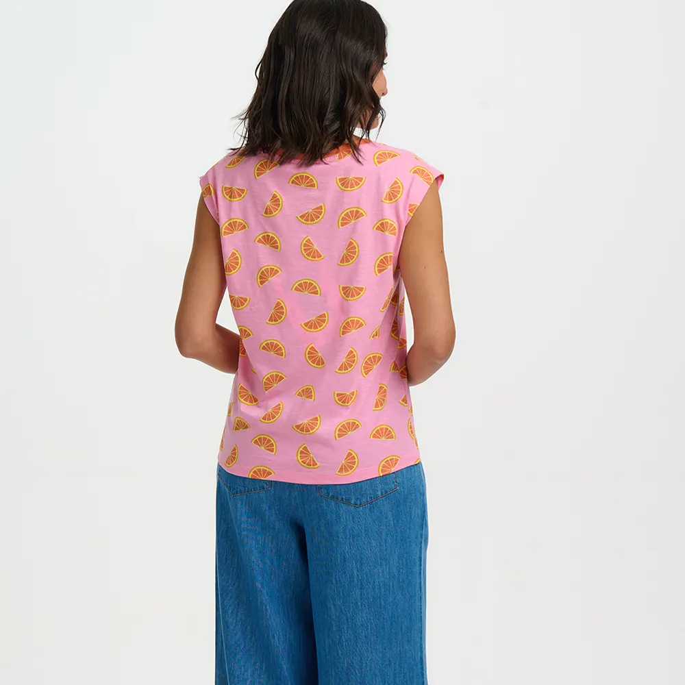 Το Chrissy Relaxed Tank επιστρέφει στην πιο “ζουμερή” του εκδοχή. Σε μια έντονη, καλοκαιρινή ροζ/φούξια απόχρωση, αυτό το αμάνικο top διακοσμείται με ένα μοναδικό κέντημα από πορτοκάλια, δημιουργώντας την τέλεια αντίθεση που τραβάει τα βλέμματα.