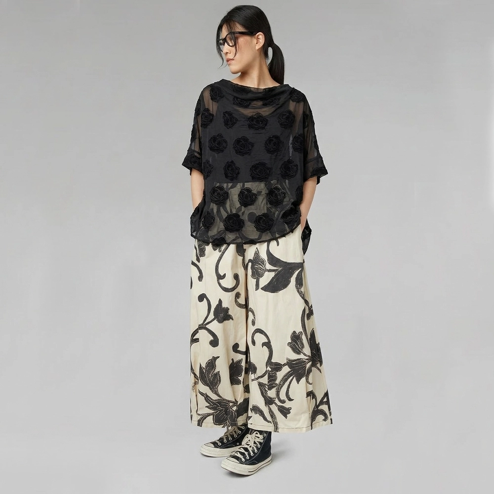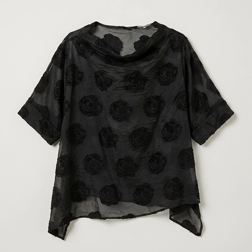 Η επιτομή του romantic chic style! Αυτή η μαύρη μπλούζα της Wendy Trendy είναι ένα πραγματικό έργο τέχνης. Η αιθέρια διαφάνειά της σε συνδυασμό με τα εντυπωσιακά, ανάγλυφα τριαντάφυλλα δημιουργούν ένα look που μαγνητίζει τα βλέμματα, ιδανικό για βραδινές εμφανίσεις με άποψη.