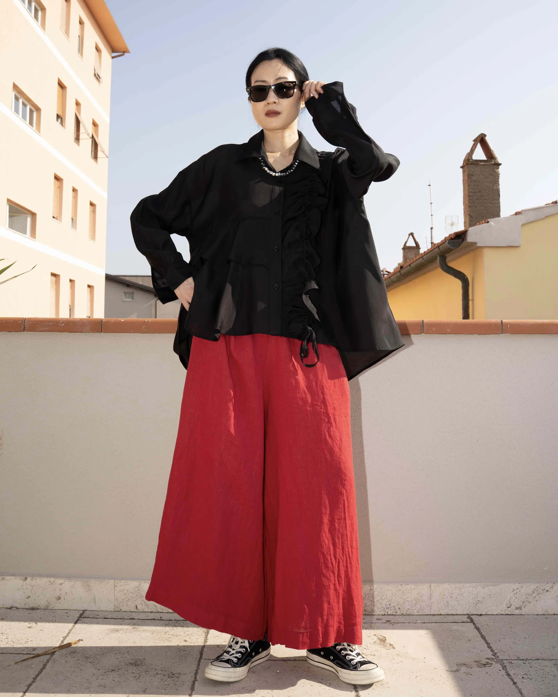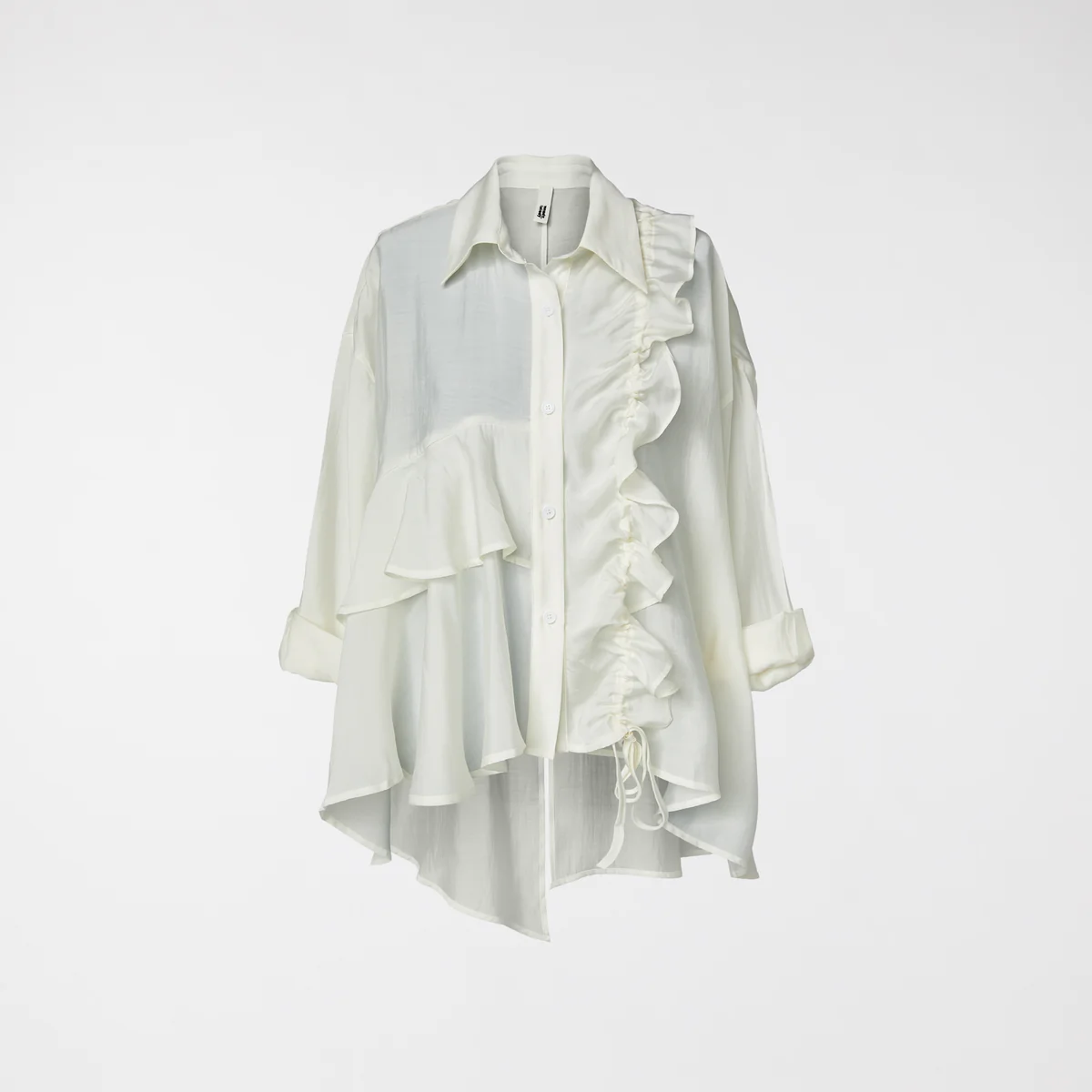 Η απόλυτη δήλωση στυλ για τη φετινή σεζόν! Αυτή η ασύμμετρη πουκαμίσα από τη Wendy Trendy επαναπροσδιορίζει το κλασικό λευκό πουκάμισο. Κατασκευασμένη από ημιδιάφανο, ελαφρύ ύφασμα (μίξη Lyocell), προσφέρει μια πολυτελή και δροσερή αίσθηση.