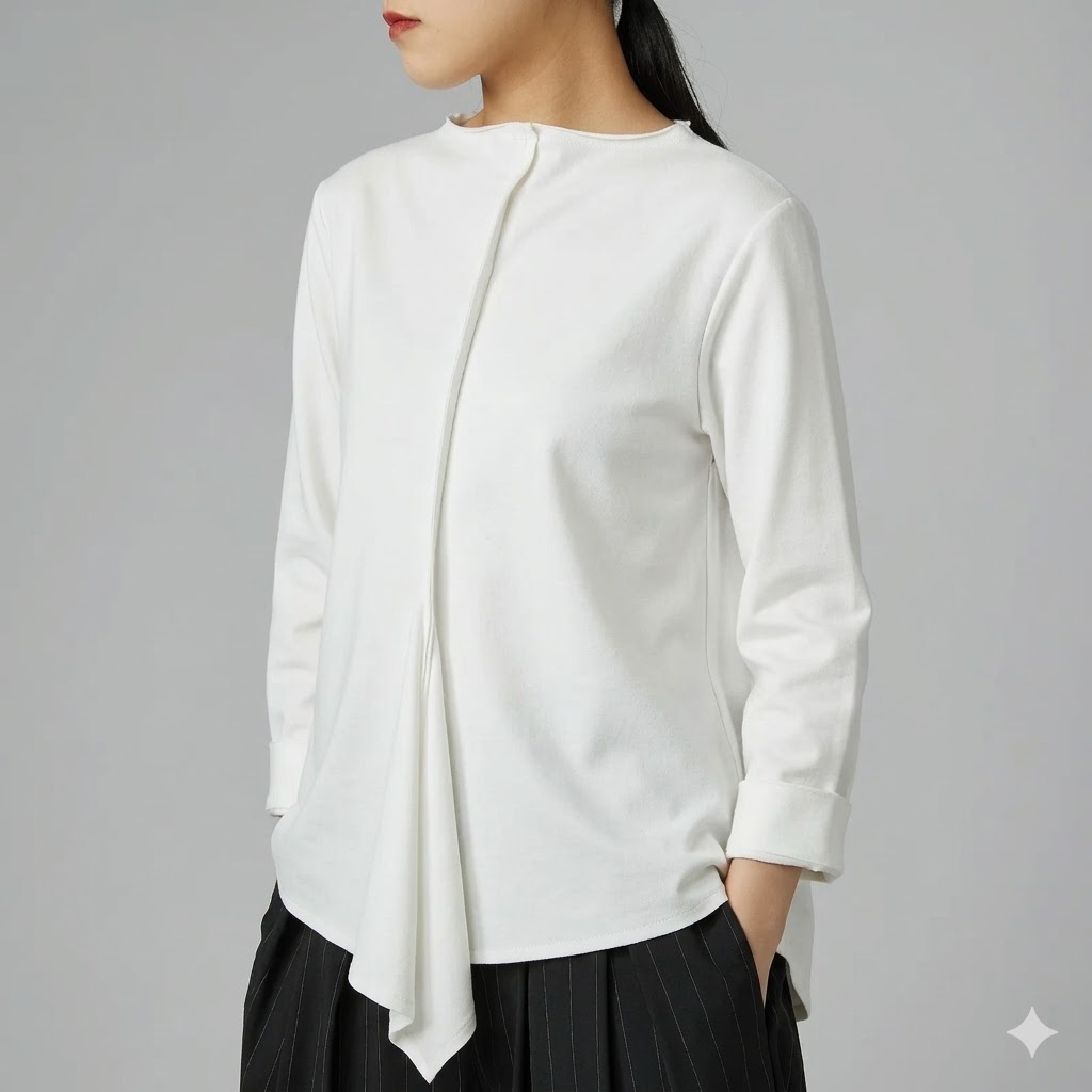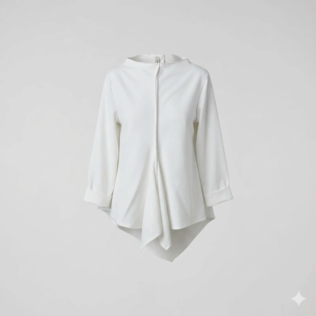 Αναβαθμίστε το minimal look σας με αυτή την εντυπωσιακή λευκή μπλούζα. η κεντρική ασύμμετρη πτύχωση στο μπροστινό μέρος,δημιουργεί κίνηση και κολακευει.