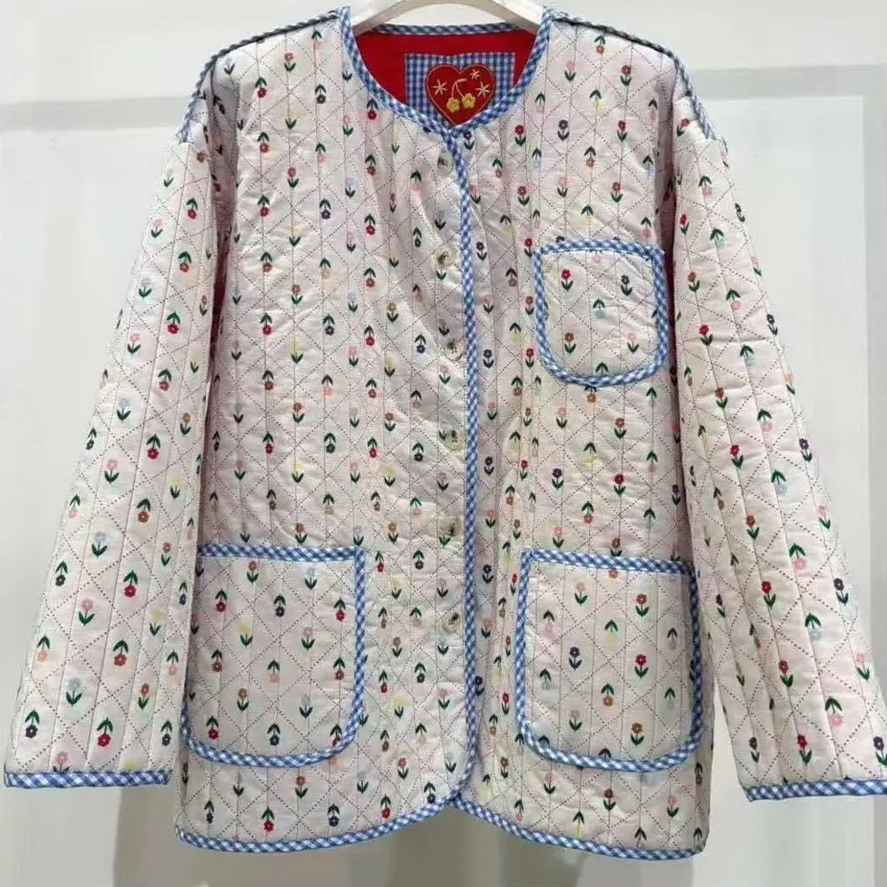 Καπιτονέ Ανοιξιάτικο Μπουφάν Wiya με Λουλούδια & Καρό Σιρίτι
