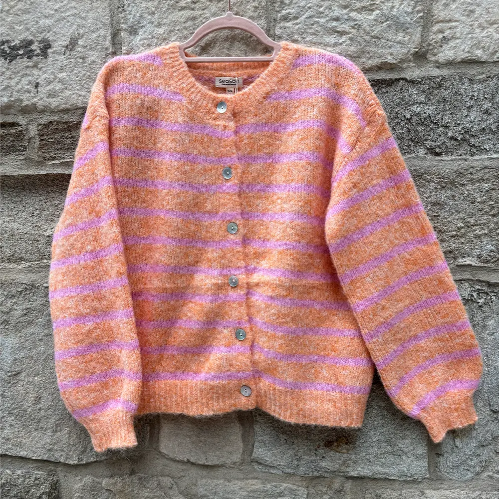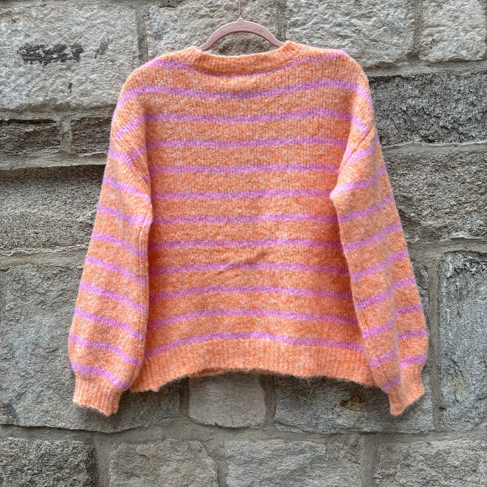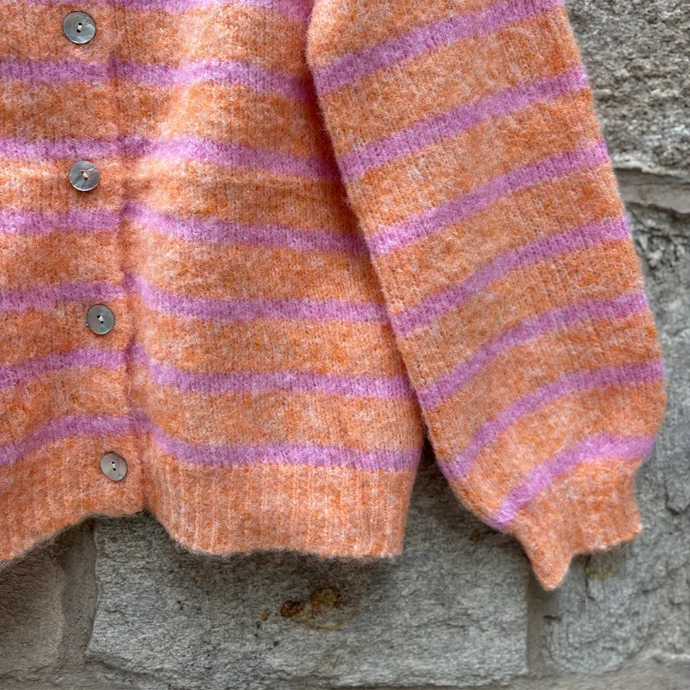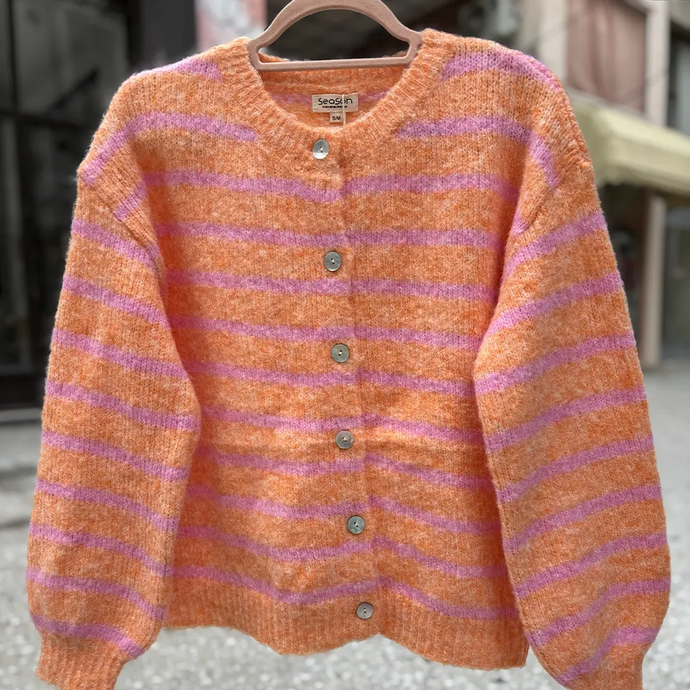 Πλεκτή Ζακέτα με Κουμπια και Ρίγες – Πορτοκαλι & Ροζ